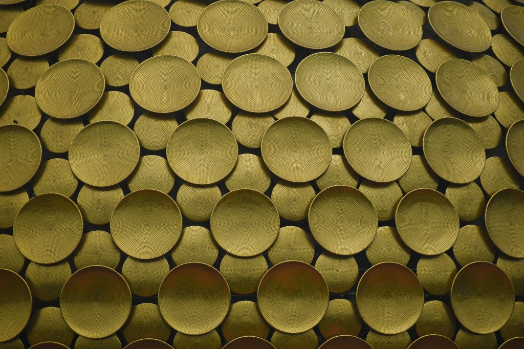 It’s a pure gold coin of the size of my work floor in the plaza, floating above all. Smooth and static.